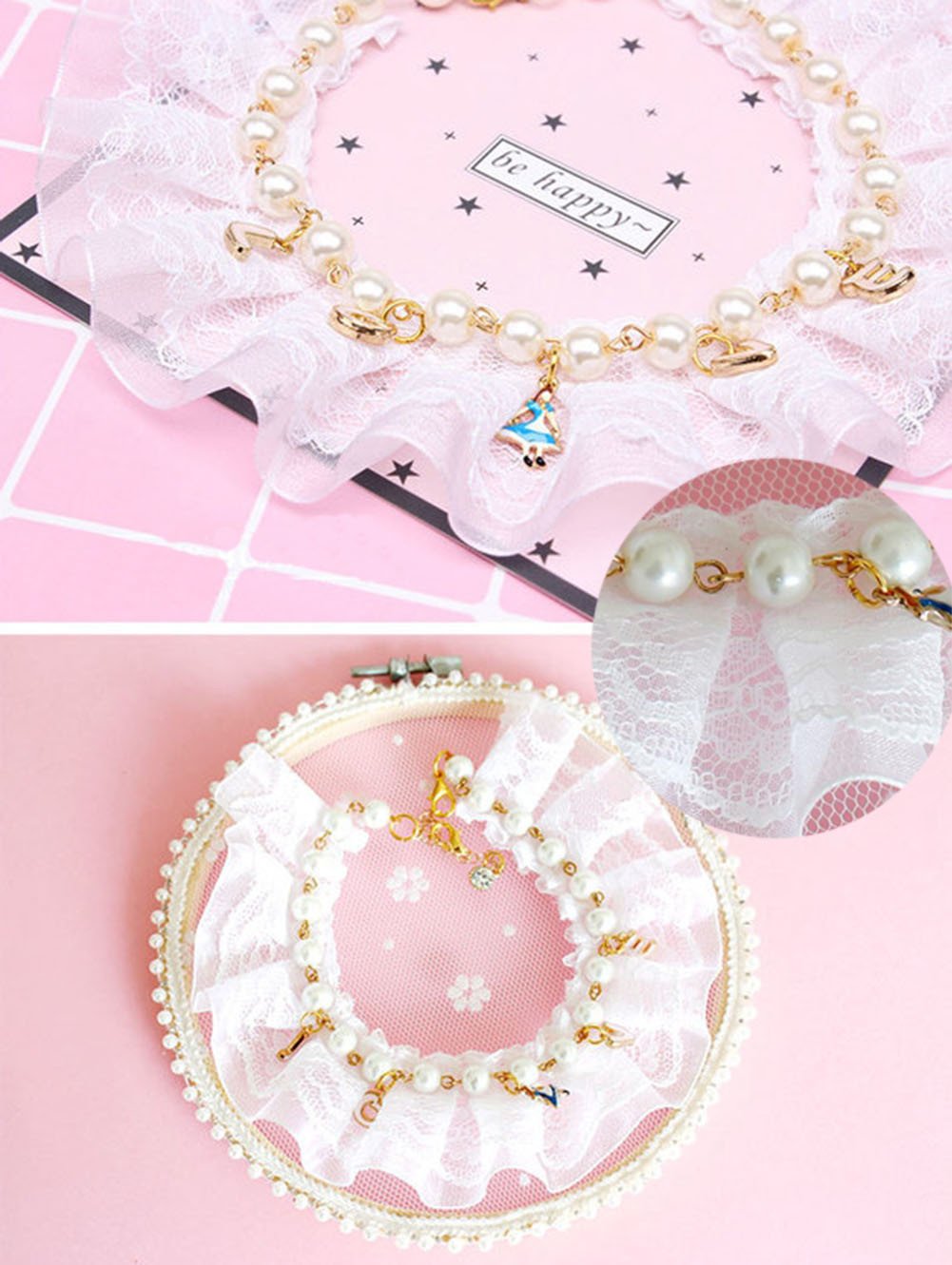 Luxurious Pearls Pet Collar With Lace Decorative Necklace for Medium Cat Dog 10-12 inches