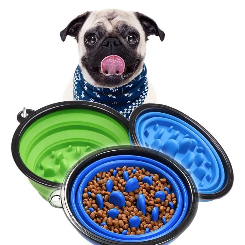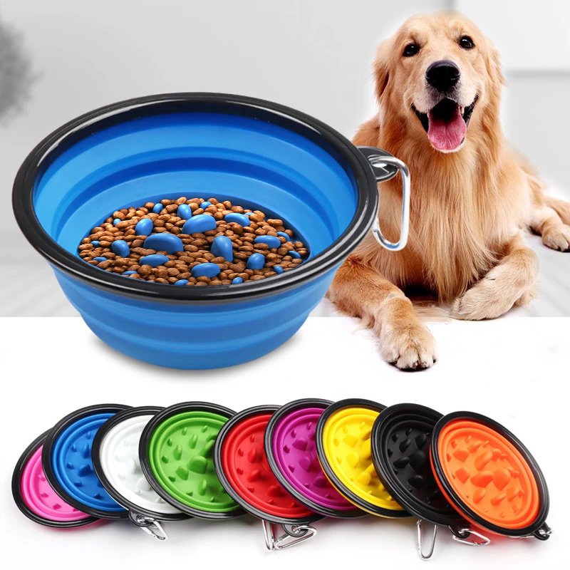 Portable Pet Feeder Travel Foldable Pet Dog Bowl Silicone Collapsible Slow 350ml/1000ml Feeding Bowl