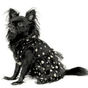 This black dot dress makes your pet shining and charming in a crowd. Party dress easy to dress up and take off soft, comfortable and breathable. Made with A Delicate Voile Black Fabric with Gold Accents.